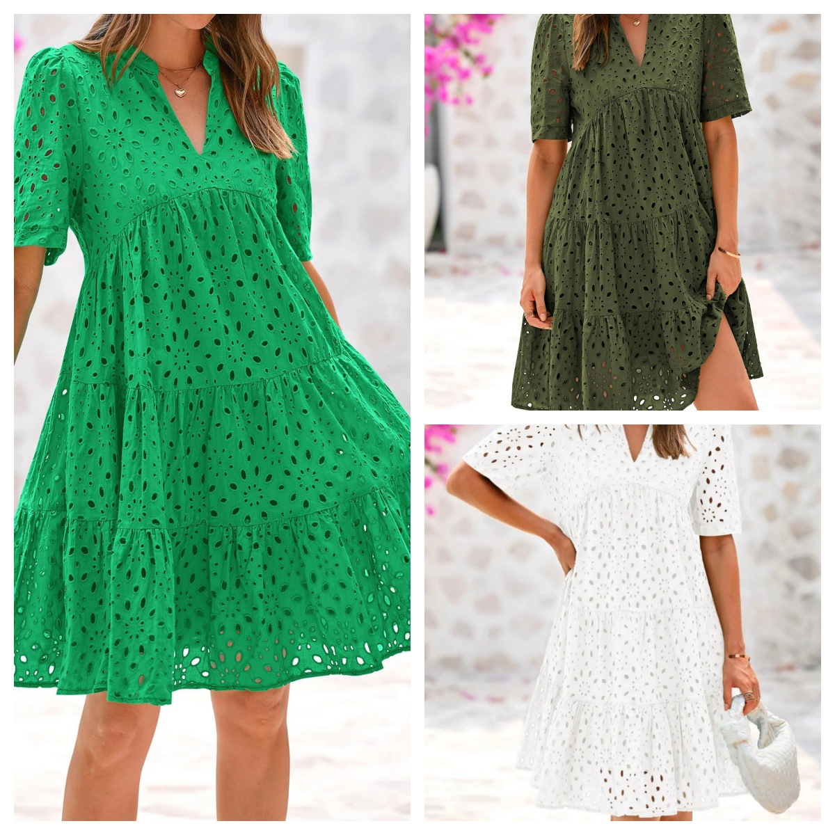 The Embroidery eyelet detail and swing A-Line shape add a playful and feminine touch to this Boho mini dress, while the V-neck and short sleeve keep you cool on summer days. Pair it with sneakers or sandals, or a cool hat for a casual look.